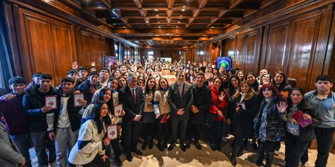 El gobernador Gerardo Zamora, acompañado por el jefe de Gabinete de ministros, Elías Suárez, recibió este miércoles en Casa de Gobierno la visita de cien alumnos pertenecientes al Colegio Secundario “San Isidro Labrador” de la ciudad de Forres, departamento Robles, y del Agrupamiento Nº 86.123 de la localidad de Santa …