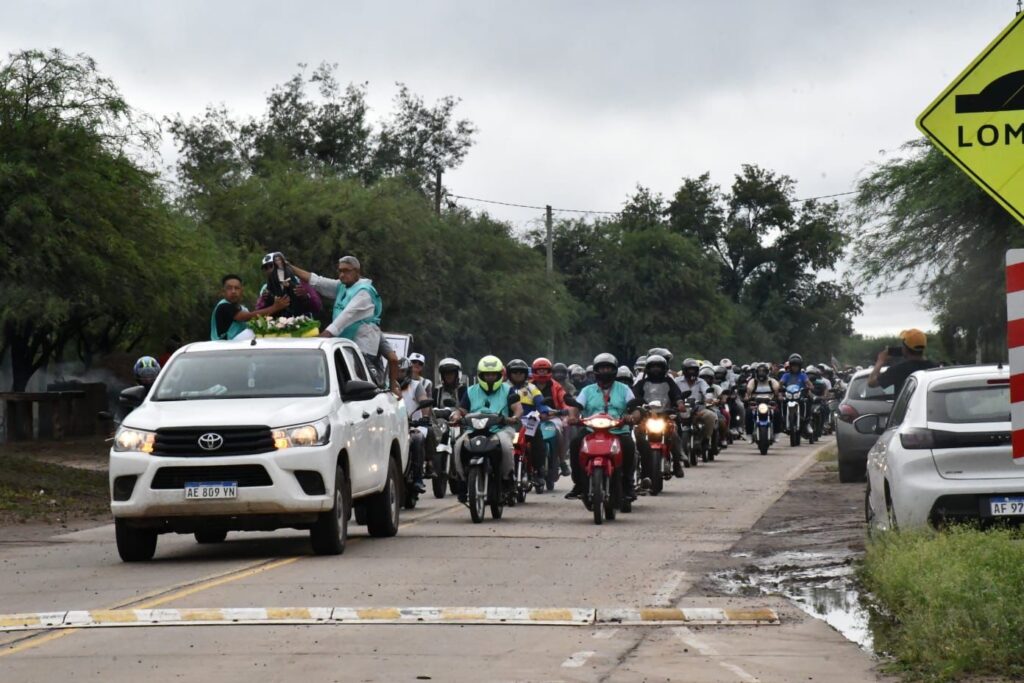 La peregrinación, organizada por la comunidad religiosa que encabeza el padre Mario Ramón Tenti, reunió a gran cantidad motociclistas de distintos puntos de Santiago del Estero y de otras provincias; también algunos con autos antiguos.