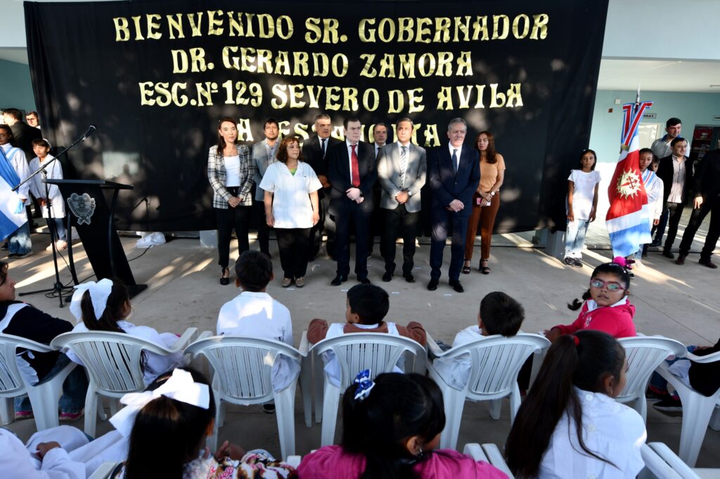 El gobernador Gerardo Zamora visitó este martes por la mañana el paraje La Estancita, ubicado en el departamento Capital, donde dejó oficialmente inaugurado el nuevo edificio de la Escuela N° 129 “Severo de Ávila”, a donde concurren 45 alumnos.