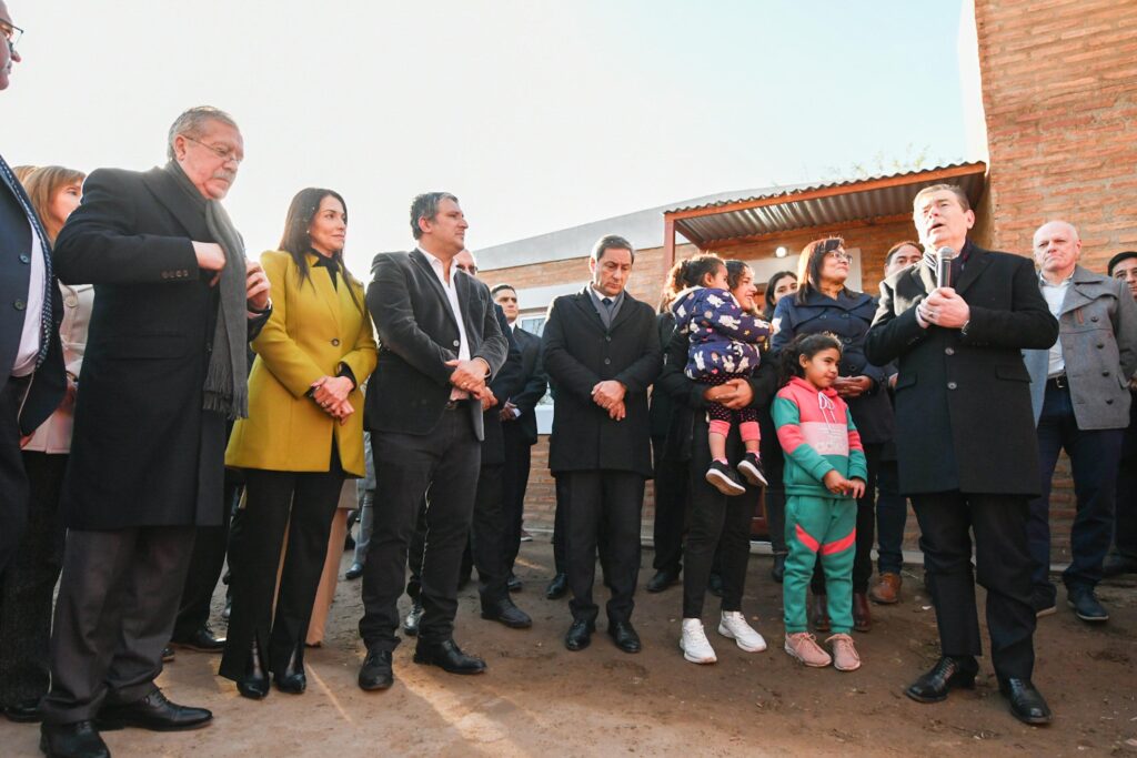 Tras el corte de cintas, el mandatario destacó la importancia de este programa, que “viene a suplir no solo una necesidad habitacional, sino también implica una cuestión sanitaria, porque de esa manera vamos eliminando las viviendas ranchos o precarias; se va generando una red solidaria de gente que trabaja, que se capacita en la construcción de viviendas y también se motoriza la economía”.