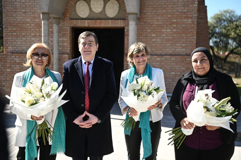 La comitiva hizo un recorrido por el parque interreligioso, donde pudieron apreciar los edificios inspirados en la arquitectura de las cinco religiones más grandes del planeta: el catolicismo, el judaísmo, el islamismo, el protestantismo y el budismo, las que se encuentran representadas con réplicas de una mezquita, una sinagoga, una Capilla Sixtina, un templo budista y un templo protestante.