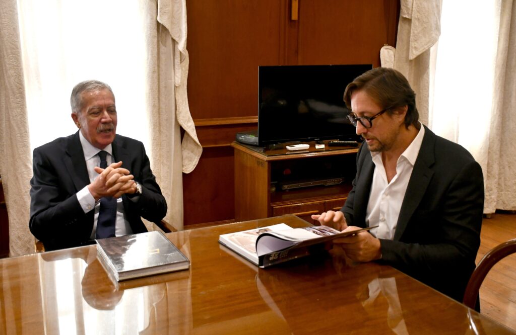 El jefe de Gabinete de Ministros, Elías Suárez, recibió este miércoles por la mañana en Casa de Gobierno al presidente de la Fundación El Libro, Christian Rainone, quien se encuentra en Santiago del Estero con motivo de los preparativos para la 15° edición de la Feria Provincial del Libro, que se desarrollará desde el 24 al 28 de septiembre, en el Centro de Convenciones Fórum y en el Centro Cultural del Bicentenario (CCB) de la ciudad Capital.