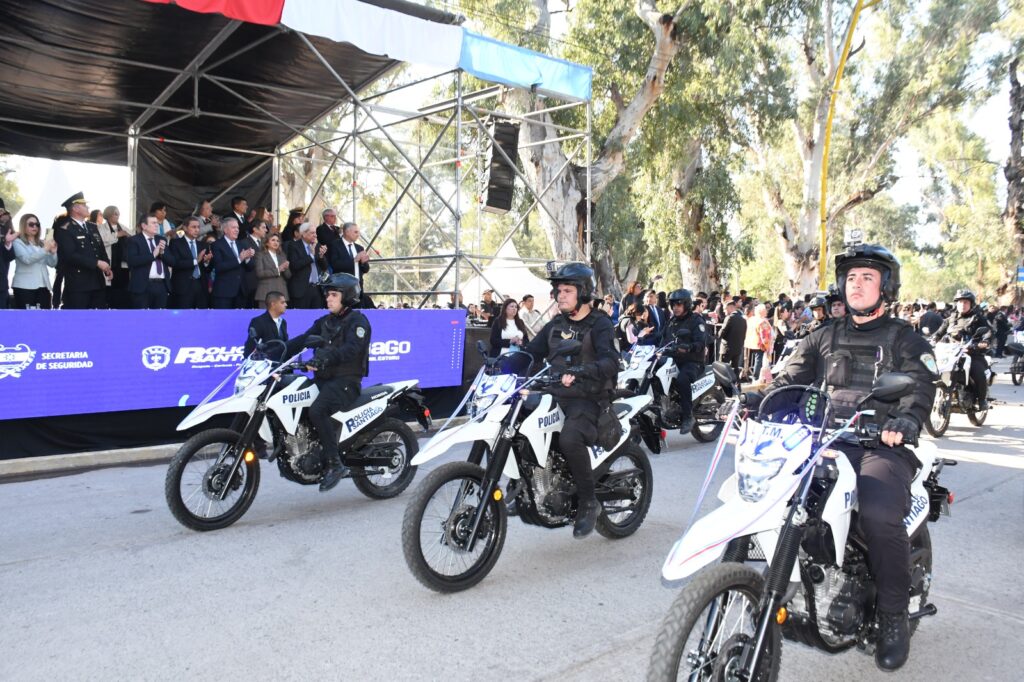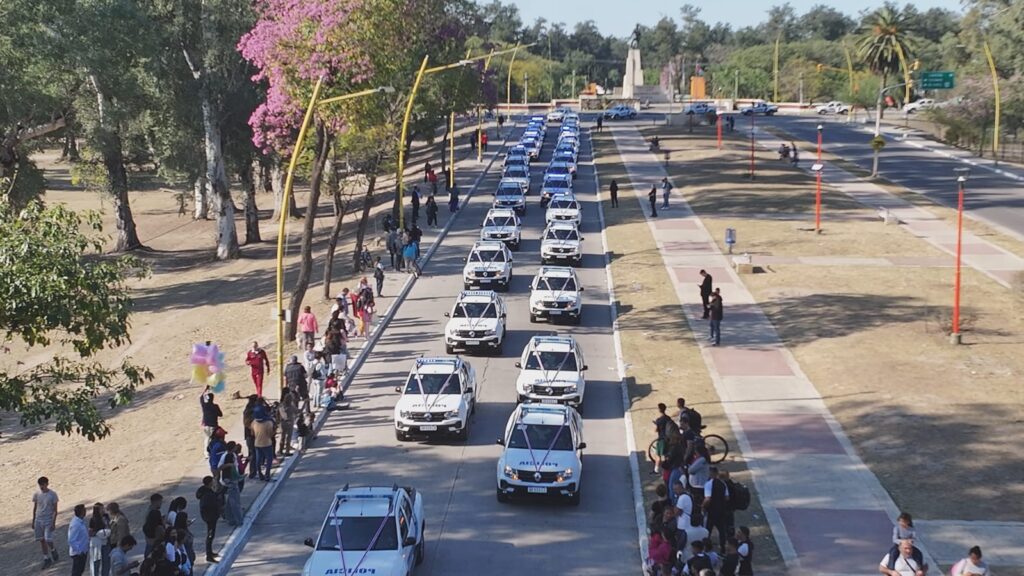 En el acto central por el 73° aniversario de la Policía de la Provincia, realizado este lunes en horas de la siesta en el Parque Aguirre de la ciudad Capital, el gobernador Gerardo Zamora entregó un total de 80 camionetas y 24 motocicletas como parte de las inversiones realizadas con el objetivo de fortalecer el servicio de prevención y seguridad de los santiagueños en toda la geografía provincial.