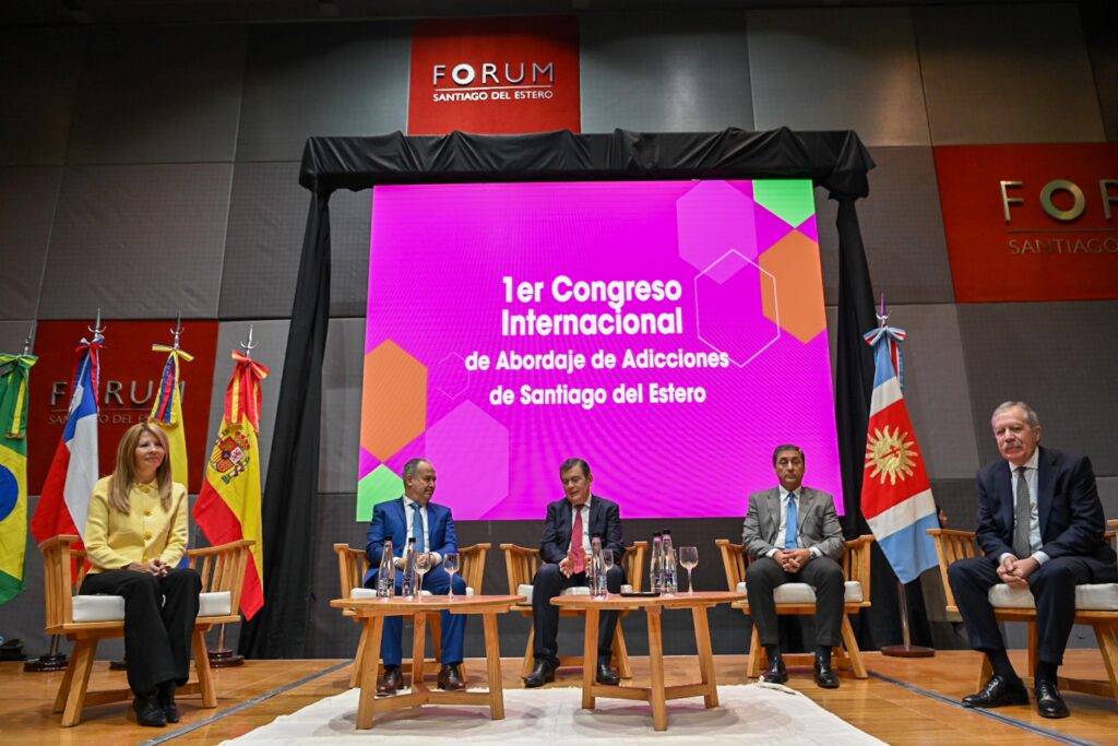 El gobernador Gerardo Zamora participó este jueves por la mañana de la ceremonia de apertura del 1° Congreso Internacional “Adicciones: Sistemas en Red y Comunidades Inteligentes” que se desarrollará hasta este viernes 5 en el Centro de Convenciones Fórum con más de 5.000 inscriptos que asistirán a disertaciones de especialistas argentinos, de Brasil, Colombia, España y Chile, sobre temas en salud, justicia, educación y comunidad para la construcción de respuestas colectivas frente a esta problemática.
