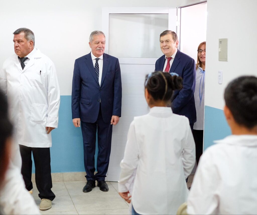 Estuvo acompañado por el vicegobernador Carlos Silva Neder, y el jefe de Gabinete de Ministros, Elías Suárez, junto con la ministra de Salud, Natividad Nassif, y el secretario de esa cartera, Gustavo Sabalza; el director del hospital, José Gómez, entre otros funcionarios del área.