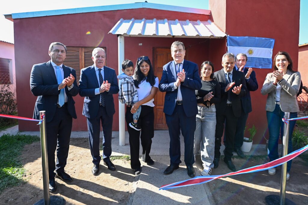 En el domicilio de Marina Coria se realizó el corte de cintas y la entrega simbólica de llaves a los beneficiarios de las viviendas sociales, cuya construcción fue financiada a través del Ministerio de Desarrollo Social, y contó con la colaboración para la ejecución de la Municipalidad de Pinto.