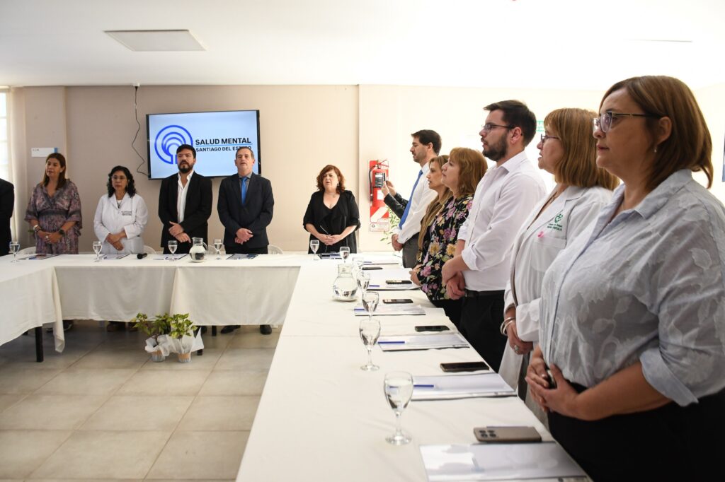 La mesa de apertura estuvo encabezada por el secretario de Salud, Gustavo Sabalza; la secretaria de DD.HH, Daniela Águila; el director del Centro Provincial de Abordaje Integral de Salud Mental, Néstor Medina; la directora del CIS Banda, Liliana Garnica, y la decana de la Facultad de Ciencias de la Salud de la Ucse, Analía Valentini.