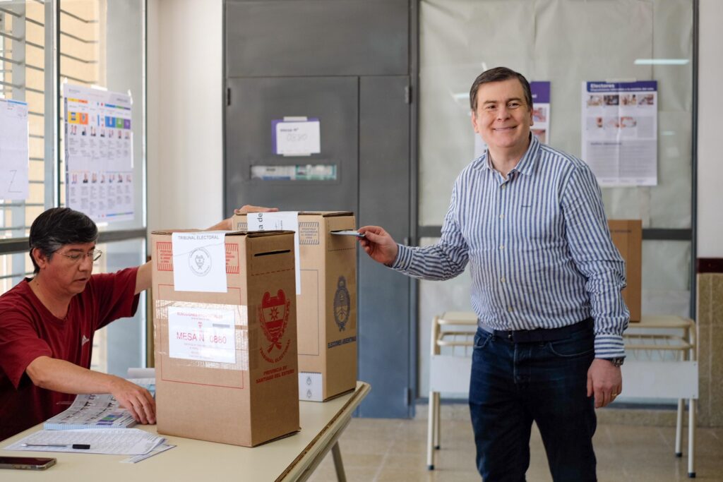 El gobernador Gerardo Zamora y candidato a senador por el Frente Cívico por Santiago cumplió con su voto este mediodía en la Escuela Parque del Río I de la ciudad Capital, oportunidad en la que destacó la participación ciudadana para defender con su voto los intereses del país y de Santiago del Estero en particular.
