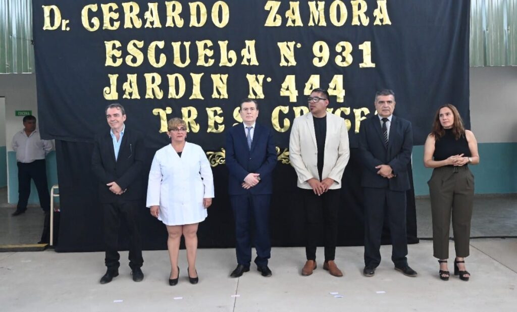 El gobernador Gerardo Zamora inauguró este martes por la mañana las obras de refacción y ampliación de la Escuela Primaria N° 931 «Padre de la Patria» y el nuevo edificio del Jardín de Infantes N° 444 «Cruceñitos Felices», en la localidad de Tres Cruces, departamento Jiménez.