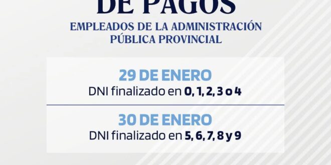 El Gobierno de la provincia, a través del Ministerio de Economía, informa que el pago de los haberes correspondientes a enero 2026 para los trabajadores de la administración pública de Santiago del Estero se iniciará el próximo jueves, conforme al siguiente cronograma.