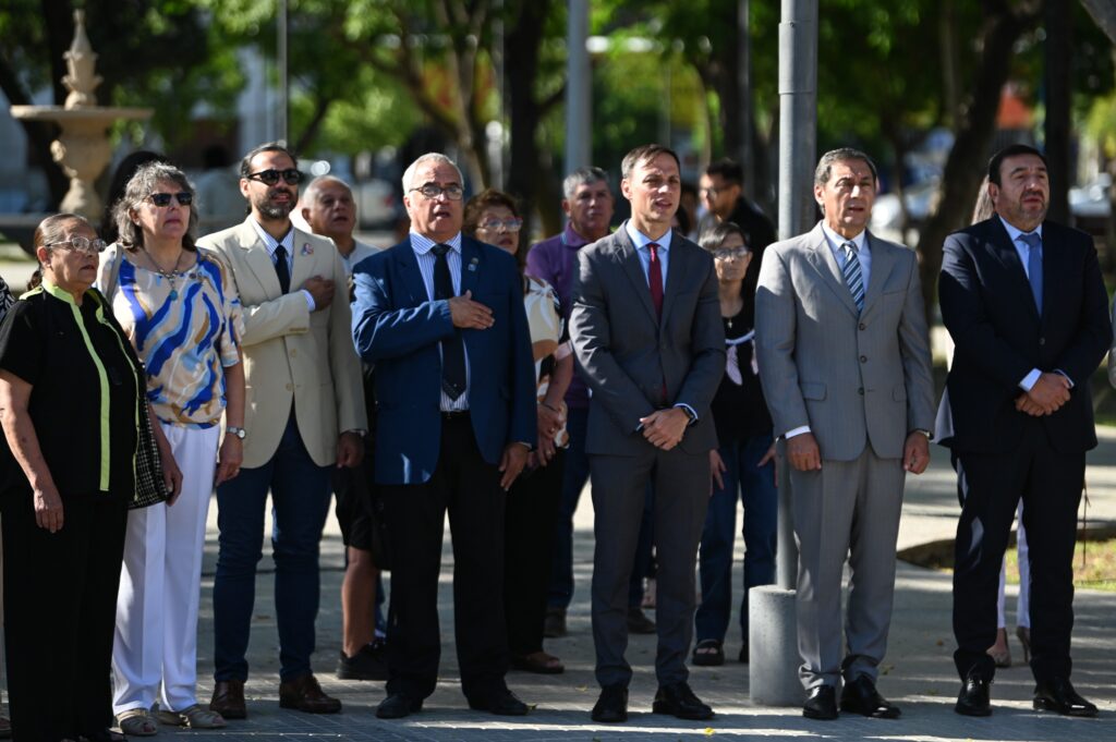 La ceremonia finalizó con la colocación de ofrendas florales al pie del monumento del prócer y la entonación de la Marcha a San Lorenzo.