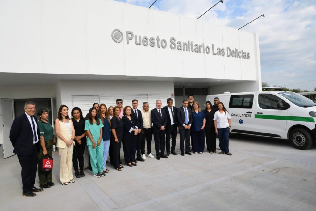 Previo a las inauguraciones y a la ceremonia central, el mandatario provincial visitó el nuevo Puesto Sanitario Las Delicias, que se construyó como parte del Plan de Fortalecimiento del Sistema Público de Salud y la Consolidación de la Red de Atención Primaria.